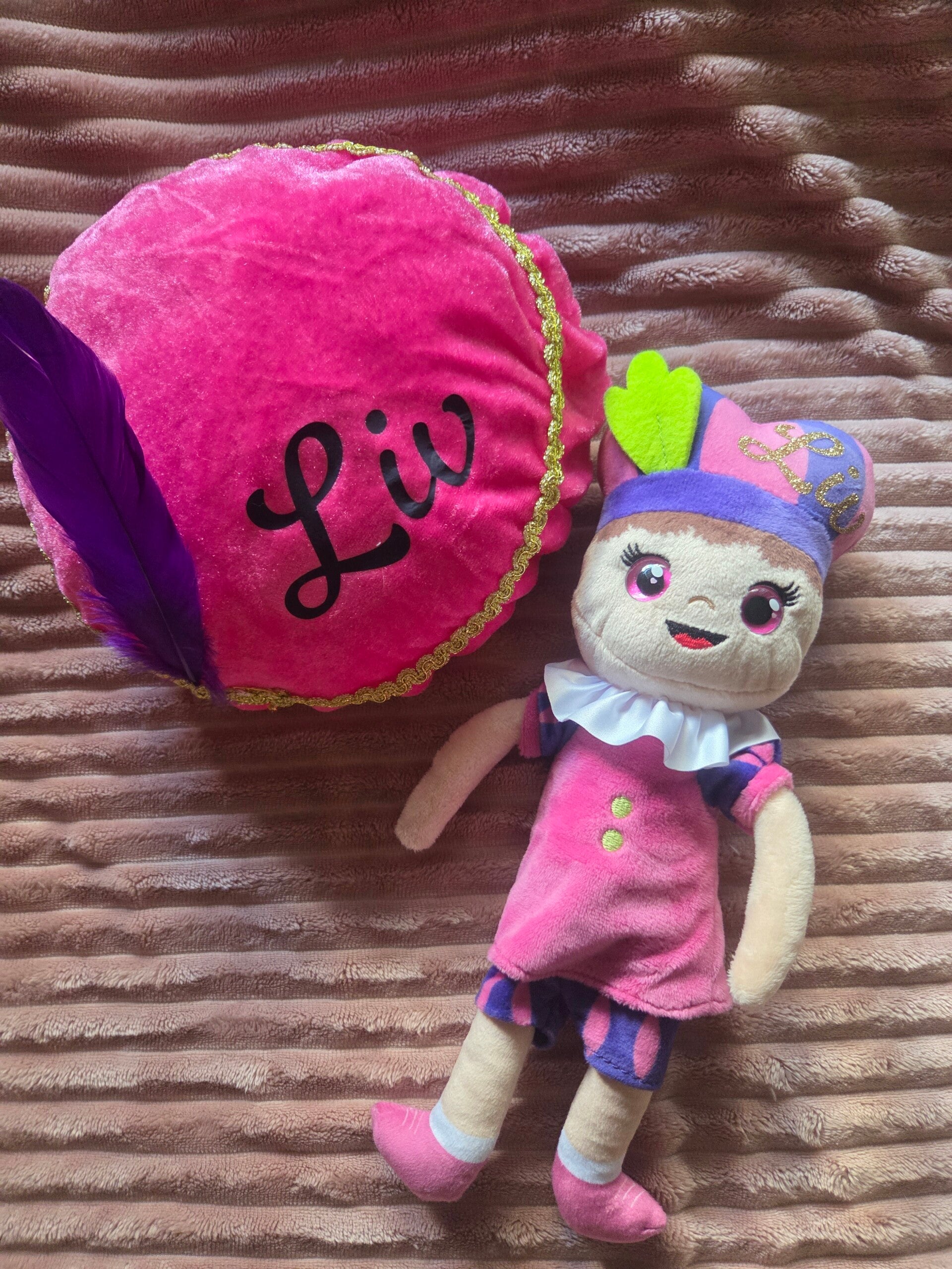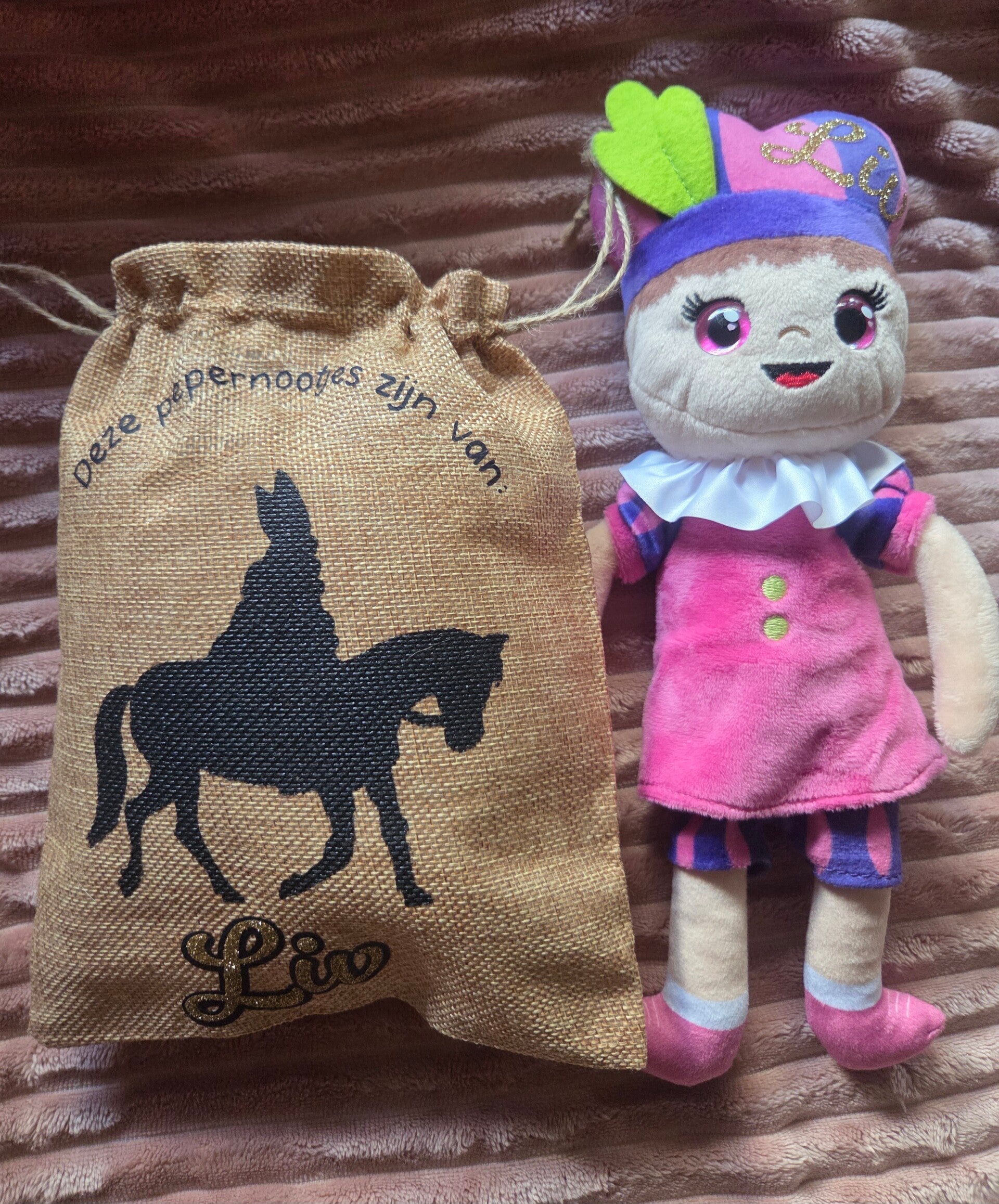 Deze super leuke gepersonaliseerde pluche Sint of Piet is ideaal als schoen kado of gewoon zomaar. Ook is deze knuffel te combineren met een pietenmutsje met naam naar keuze of een jute sint zakje met naam.